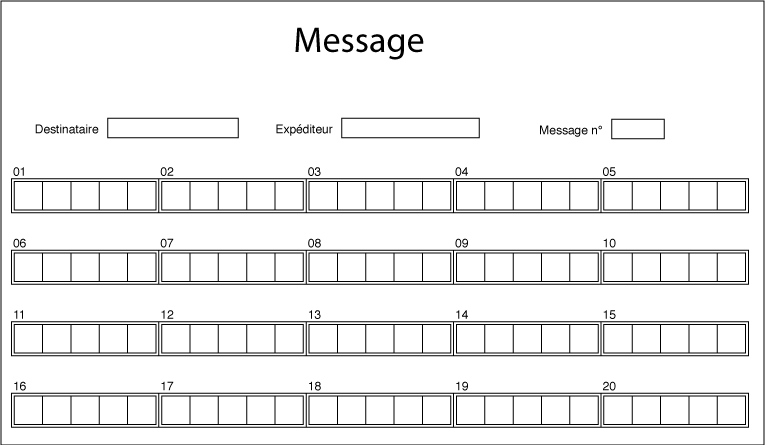 Message sheet: it has rows of boxes in which the letters of the entire message are written: